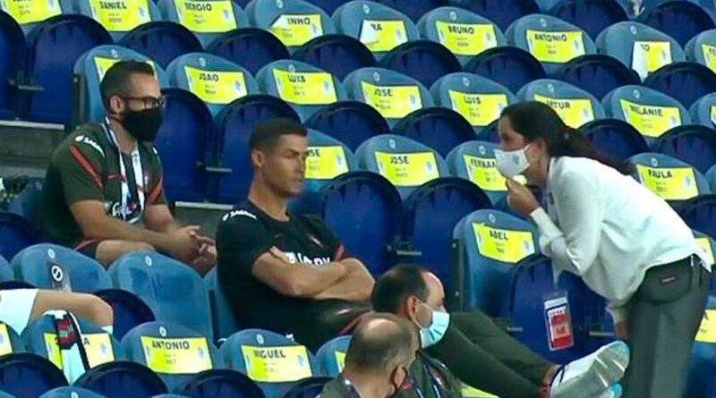 Ronaldo siguió todo el partido desde la platea, con la comodidad que permiten las reglas actuales: no hubo espectadores en el estadio debido a que la UEFA no lo permite por la pandemia de coronavirus.