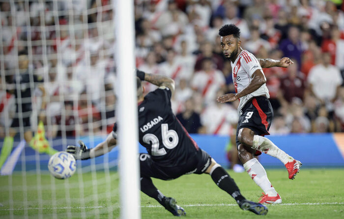 Esa había sido la única llegada de los de granate en la primera mitad. Pero ocurre que River tampoco había producido demasiado. Con una formación que sorprendió un poco (Gonzalo «Pity» Martinez y el debutante Lencina adentro), el equipo local manejó más la pelota, pero sin mucha profundidad. Sus mejores llegadas fueron por un remate de media distancia de Colidio que desvió Losada, y otra del mismo Colidio en el arranque del partido.