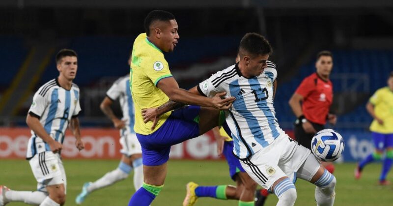 El seleccionado argentino Sub-20 de fútbol perdió este lunes por la noche 3-1 ante Brasil, resultado que comprometió seriamente su clasificación a la segunda fase del Sudamericano de la categoría que se juega en Colombia y que otorga cuatro plazas para el Mundial Indonesia 2023, a realizarse entre mayo y junio.